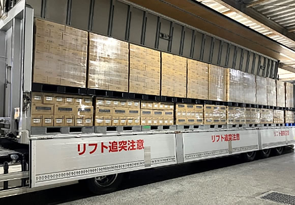 そこで、3社に配送ルートに共通性があることから、製品を混載する共同輸送システムを構築しました。共同配送に適した製品の選定、積載技術の検証、品質テストを実施し、製造拠点と倉庫間をリレー方式で繋ぐことで、積載効率の最大化やドライバースイッチなど長距離輸送でも過負荷なく運行できる体制を整えました。